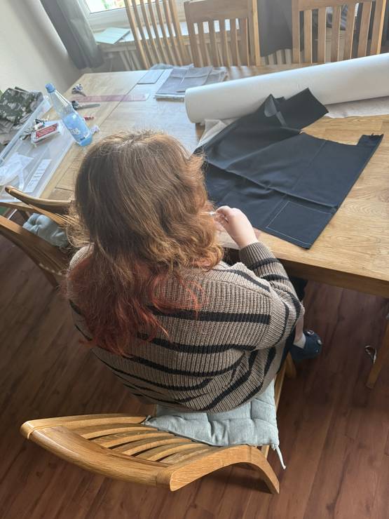Als unser Projekt gestartet ist, gab es eine Einweisung in die Nähmaschine (W6 N3300 Exklusive). Es wurden Grundlagen besprochen, Techniken geübt und vielleicht ist der ein oder andere auch mal verzweifelt, weil es nicht direkt auf Anhieb geklappt hat, aber es ist noch kein Meister vom Himmel gefallen.